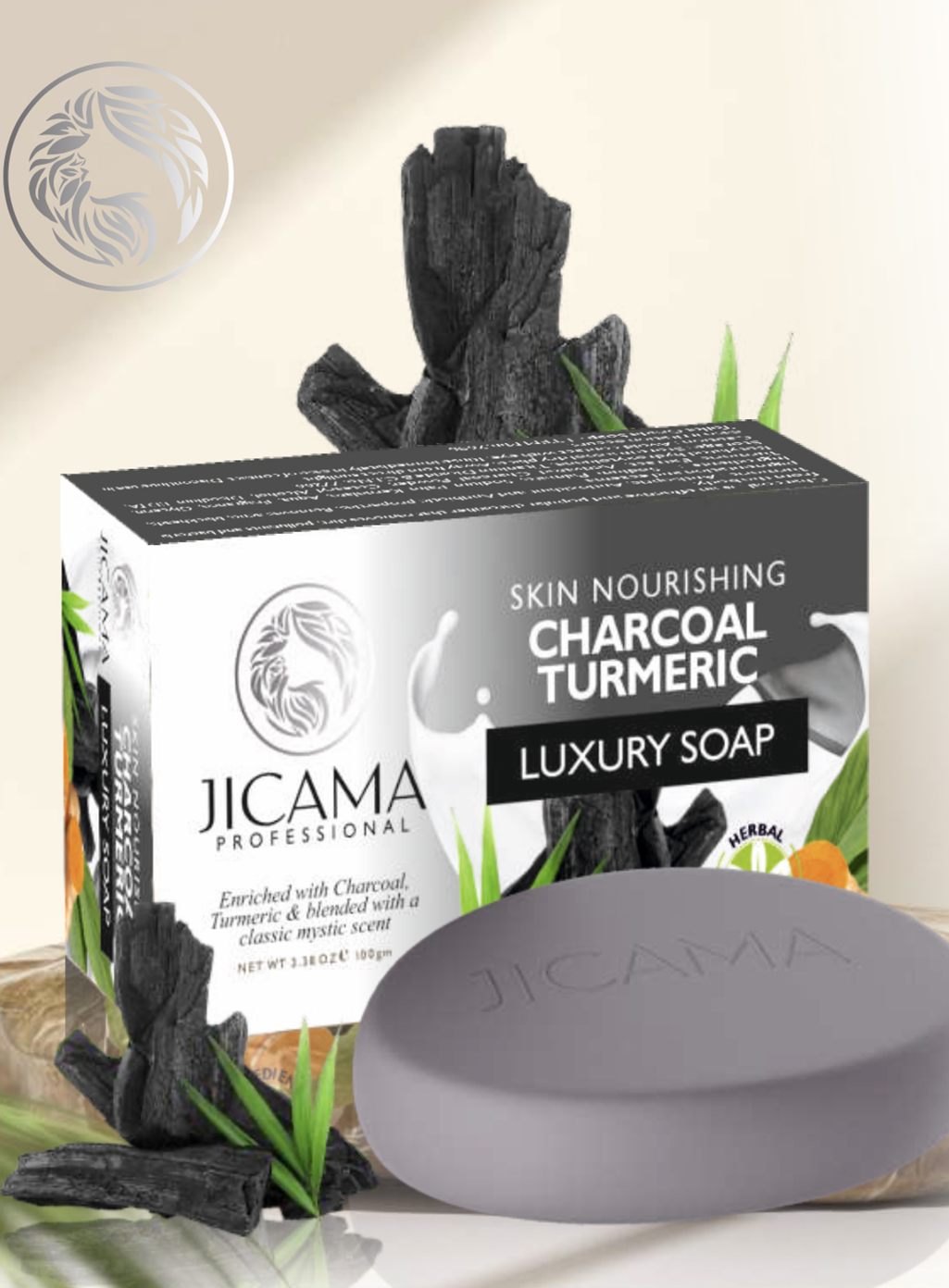 JICAMA CHARCOAL TURMERIC SOAP plays a vital role in purifying the skin by reducing acne, absorbing the excess oil, and removing all its impurities. Washing the face with it makes skin free from- pollutants, dirt and acne while ensuring glowing skin. This Ayurvedic soap contains no chemicals like Paraben or Sulphate, making it a safe and eco-friendly product. Charcoal or Activated Charcoal plays a vital role in purifying the skin. It pulls off all the impurities from the skin like a magnet, cleanses it to the core, thereby allowing it to breathe freely.