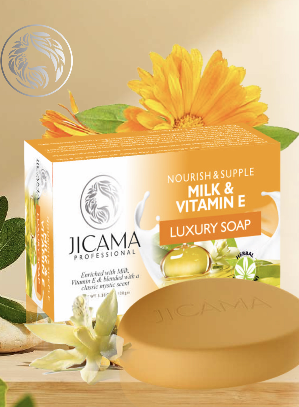 JICAMA MILK & VITAMIN E SOAP is an organic handmade soap that gently cleanses and exfoliates your skin. It revitalises and nourishes your skin and protects against damage. Milk acts as a moisturiser and helps fight sunburn, ageing, acne and reduce stretch marks. Its helps your skin to lock in moisture and soothes it to provide smoothness and softness. Vitamin E acts as an antioxidant that protects cells from damage throughout your body. It creates a natural barrier to keep moisture in your skin.